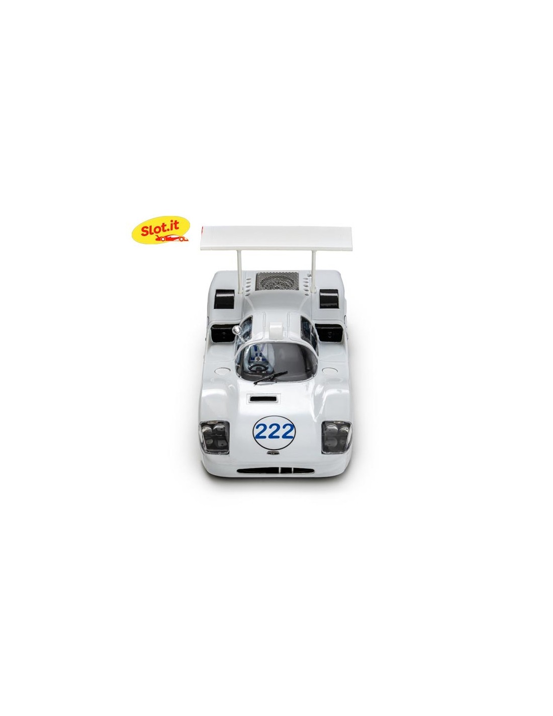 Reproducción del Chaparral 2F con las características especiales que incorporó para las 24H de Daytona que se celebraron el 4 y 5 de Febrero de 1967 como los radiadores, en su posición trasera característica, desvían el aire caliente a través de dos aberturas en el extremo trasero, en lugar de a través de su posterior capó trasero de estilo 2E. El morro del automóvil esta limpio de aberturas aerodinámicas para conseguir el equilibrio aerodinámico y también el retrovisor en el lado derecho del conductor.